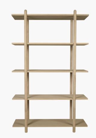 Tukeva ja vakaa hylly, jossa hyllyt tammiviilua ja jalat massiivitammea. Tällä hyllyllä on monia käyttötarkoituksia, ja sitä voidaan käyttää myös huoneenjakajana. Koottava.
