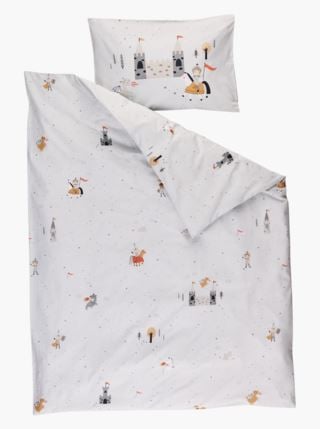 Vuodevaatesetti 100 % luomupuuvillaa, kauniilla ritariteemaisella kuvioinnilla. Tyynynpäällisessä on sivuaukko, peitteen päällisessä aukko alareunassa ja vetoketjukiinnitys.