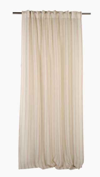 Polyesteristä valmistettu raidallinen verho, jossa on hieman rakennetta, mikä antaa pellavan tunteen. Verhossa on ommeltu monitoiminauha, joka tarjoaa monia ripustusvaihtoehtoja. Valitse piilotettujen lenkkien käyttö monitoiminauhassa, mikä luo tasaisia ja kauniita laskoksia, tai pujota verho suoraan tankoon. Perinteiseen ripustukseen käytetään renkaita ja rypytysnauhakoukkuja, jotka kiinnitetään rypytysnauhaan.