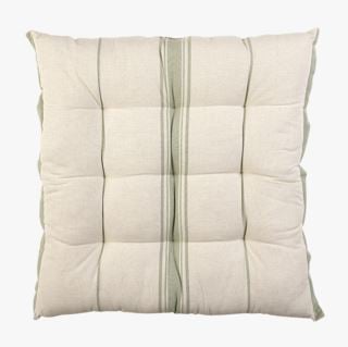 Suuri istuintyyny, jonka päällinen on puuvillaa ja pellavaa. Istuintyynyssä on koristeelliset raidat. Koko 60×60 cm.